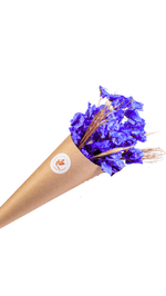 O Buque de Flores Desidratadas no Cone Lilás Amanda Flores é feito através de processos minuciosos e artesanais. É uma alternativa encantadora e sustentável.