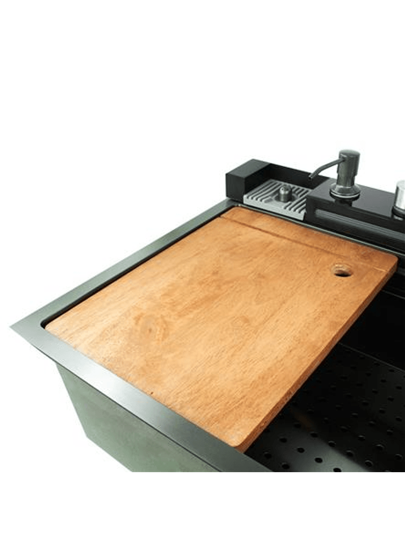 - Contém: 1 Sifão - 1 Dosador de detergente 300 ml - furação 2,8cm - 2 Cestos escorredores - 1 Tábua de corte - 1 Lavador de copos - furação 2,8cm - 1 Torneira Monocomando com Cascata e Spray. É Antirruído