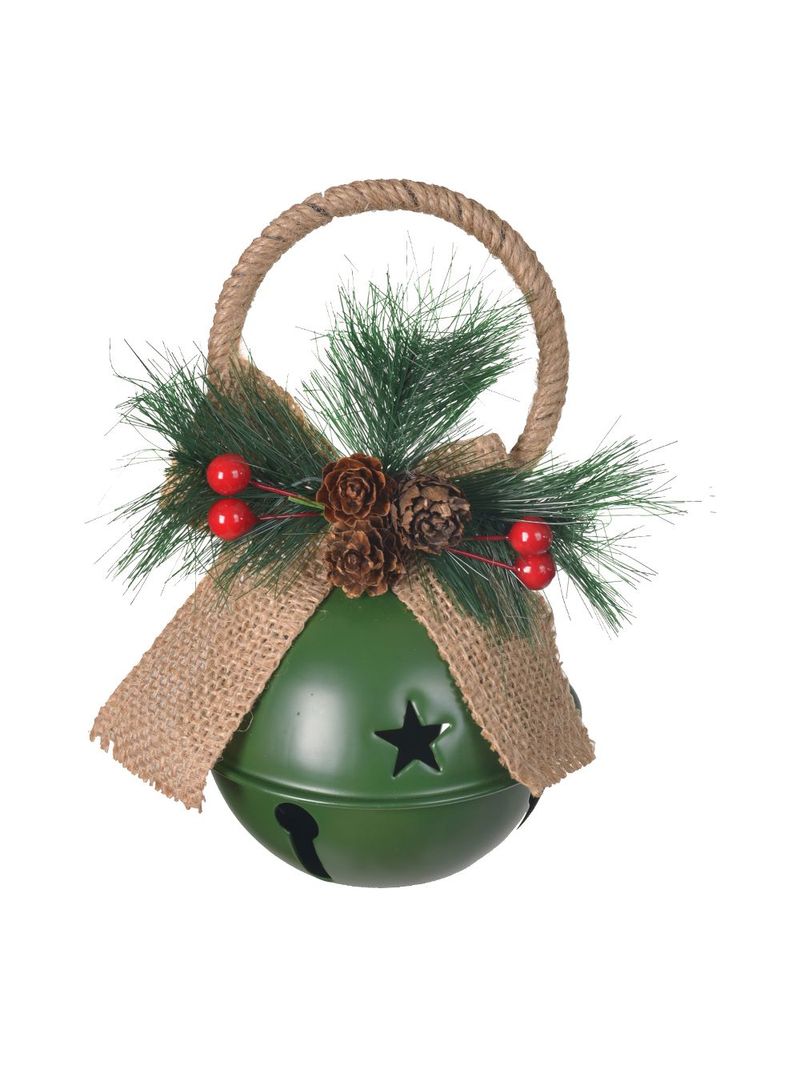 Descrição de Enfeite Natal Guizo Metal 18x15cm Verde Flor Arte