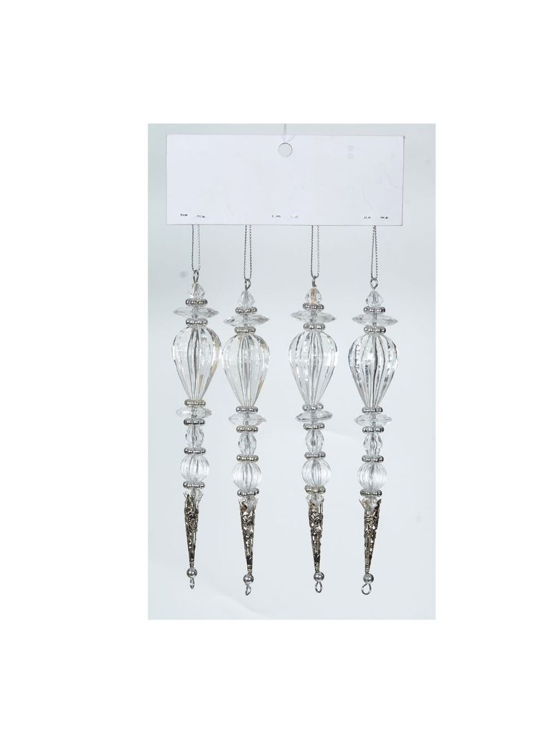 Descrição de Enfeite Natal Pingente com 4 16.5x2.5cm Transparente Flor Arte