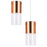 O Pendente First 2xE27 Cobre Bronzearte possui design decorativo e fino, com cúpula cilíndrica estruturada em vidro com três opções de acabamento, canopla em aço e cabo de 1,4m com altura ajustável.